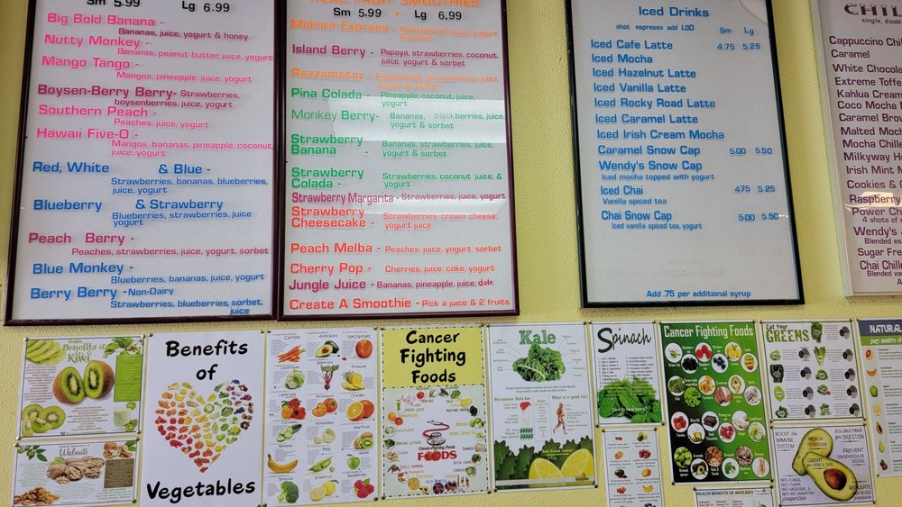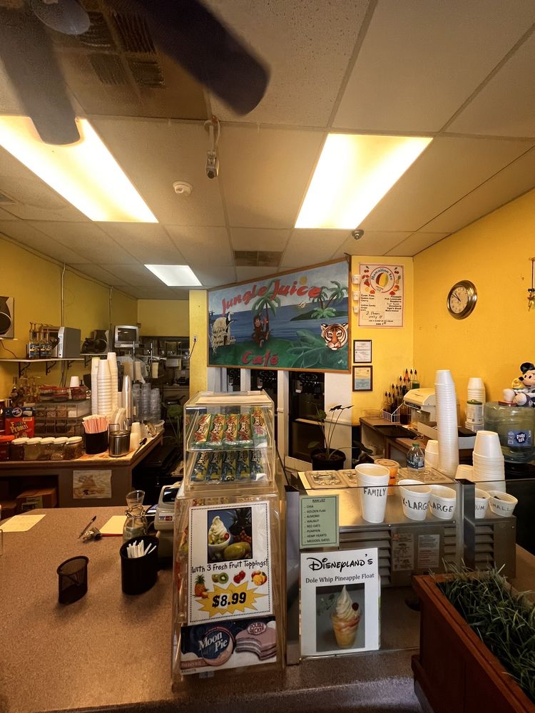Introducing Jungle Juice Cafe, located in Hemet, CA, a hotspot for shaved ice, ice cream, frozen yogurt, and healthy smoothies. Known for their exceptional customer service, this cafe offers a wide variety of refreshing treats made with organic fruits. Customers rave about the delicious ice cream cones, smoothies, and specialty drinks. With a cozy ambiance and friendly owners, Jungle Juice Cafe provides a welcoming atmosphere for all visitors. Get ready to indulge in their signature Chi Tea Chiller, Dole Whip, and Peach Berry Smoothie. Whether you're in the mood for a sweet sundae or a healthier option, this cafe has something for everyone. Enjoy a taste of paradise at Jungle Juice Cafe, where quality and hospitality meet in every bite.